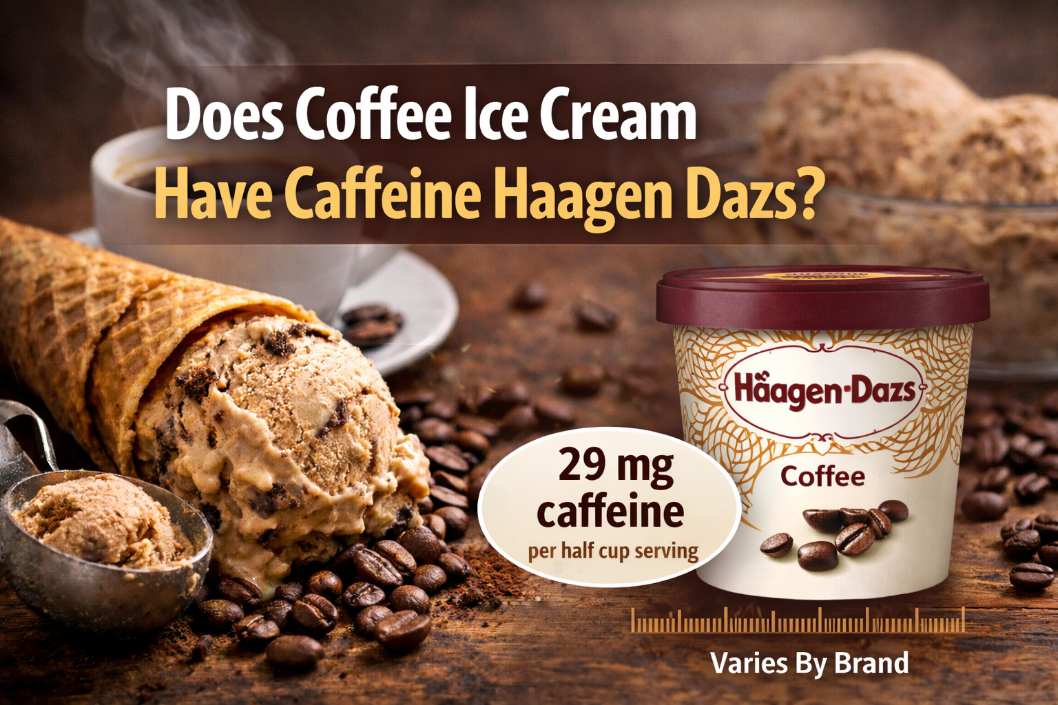 So, does coffee ice cream have caffeine? Yes, most coffee ice creams contain caffeine because real coffee is used. However, the amount is much lower than a cup of coffee. Popular brands such as Haagen Dazs, Cold Stone, Ben and Jerrys, Turkey Hill, Hood, and Blue Bell all contain small caffeine levels meant for flavor, not stimulation.