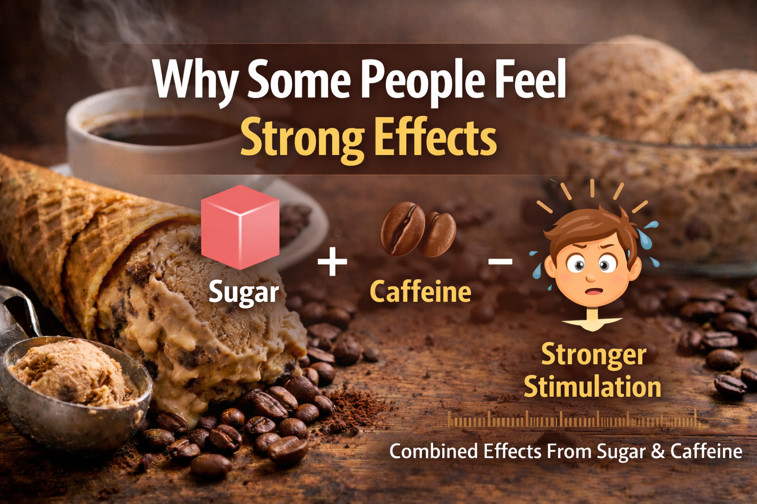 Coffee ice cream contains sugar along with caffeine. Sugar can create a short energy rise. When combined with caffeine, some people feel stronger stimulation. This effect makes people believe coffee ice cream is highly caffeinated, even when it is not.